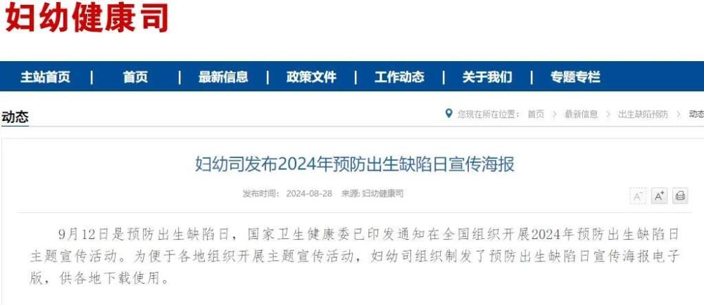 国家卫生健康委发布2024年预防出生缺陷日宣传海报