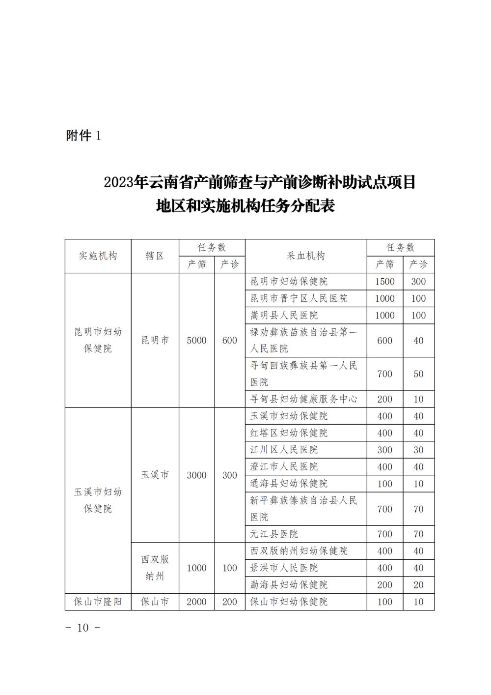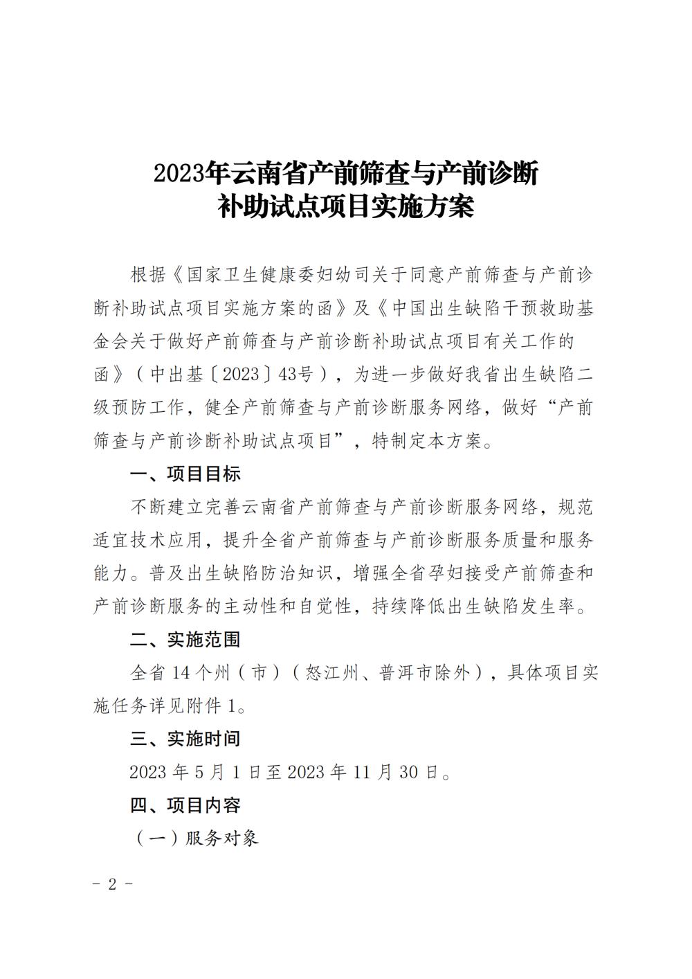 云南省卫生健康委办公室关于印发 2023 年 云南省产前筛查与产前诊断补助试点 项目实施方案的通知
